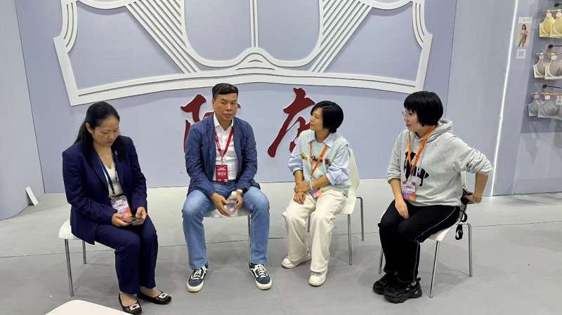 展会期间,团队认真听取现场论坛嘉宾分享,与多位内衣领域专家、企业负责人及内衣媒体代表进行访谈,围绕内衣产业新材料应用、智能化趋势、消费趋势变化、产学研对接等话题展开交流。通过面对面调研,团队系统收集了行业前沿信息与市场需求,为后续更精准服务陈店企业积累了第一手资料。